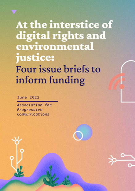 "[This is] a series of short issue briefs for funders on potential priority areas for funding activities or initiatives that would bring the work of digital rights organisations and environmental justice actors closer together. Each brief states the key problem from the perspective of the APC network, suggests mechanisms or processes for engagement and actors we feel are worth engaging, and includes specific recommendations for donors." (Overview, page 3)