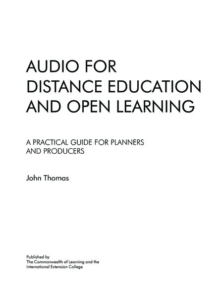 "The purpose of this handbook is to offer a practical guide to good professional practice in the design, development and delivery of audio materials - radio, audio cassettes and audio-vision - for distance and open learning. The handbook is intended for all those who are involved in the design, development, production and use of audio materials in distance education and open learning. It will be of particular interest to teaching staff and radio/audio producers who are using - or planning to use - audio as part of their courses. However, the handbook will also be of interest and value to others who are involved in or affected by the use of audio in distance and open learning - for instance, policy makers and planners, managers and administrators, those working on related media (e.g. print, TV and video), face-to-face tutors and facilitators." (Introduction)