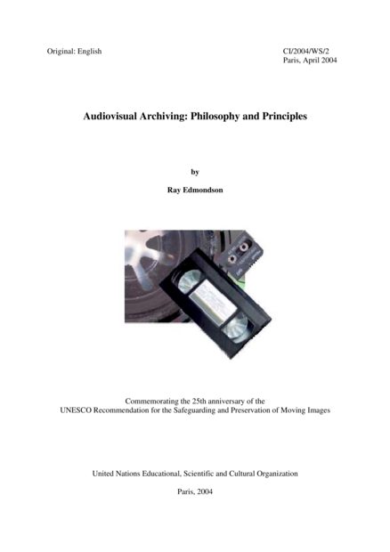 Audiovisual Archiving: Philosophy and Principles. Commemorating the 25th Anniversary of the UNESCO Recommendation for the Safeguarding and Preservation of Moving Images