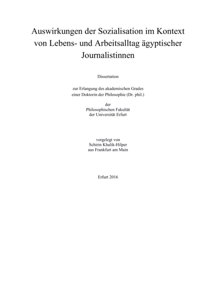 Auswirkungen der Sozialisation im Kontext von Lebens- und Arbeitsalltag ägyptischer Journalistinnen