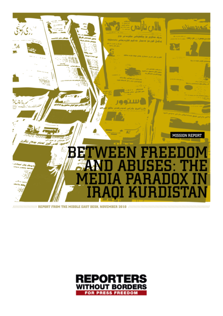 "The aim of this report is to understand the paradox of media freedom in Kurdistan. It first addresses the history of Iraqi Kurdistan’s media. A better understanding of the way these outlets emerged over time is essential in order to grasp the complexity of their current challenges. Originally considered as instruments of propaganda of various armed groups during an era of secrecy, the region’s media are inseparably connected to its politics, hence the difficulty journalists are running into as they attempt to exert their independence. A description follows of the problems now being faced by the media. Reporters Without Borders has included in this report recommendations to the Iraqi Kurdistan authorities, as well as to the region’s journalists." (Page 2)