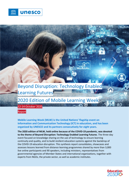 Beyond Disruption: Technology Enabled Learning Futures. 2020 Edition of Mobile Learning Week
