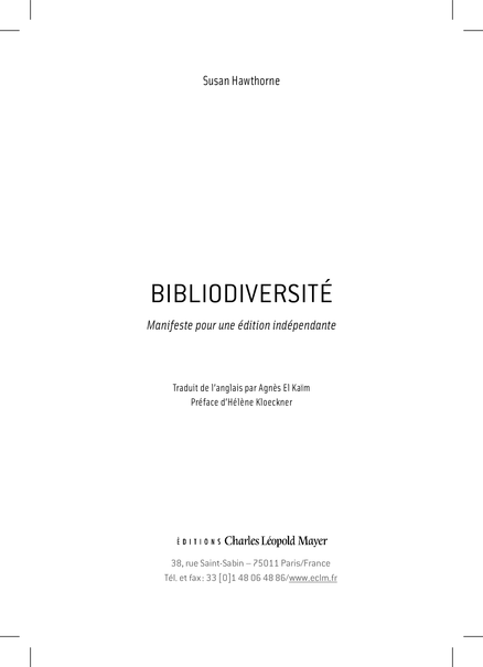 Other editions: English ed.: Bibliodiversity, a manifesto for independent publishing. Spinifex Press, 2014
