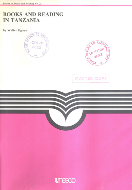 "One of a series of national monographs on the state of books and reading in a number of countries, published in order to provide book professionals and the interested public, with detailed surveys of matters relating to authorship, publishing, material production and distribution of books and reading. This monograph was prepared by the [then] General Manager of Tanzania Publishing House, Dar es Salaam, and focuses on the difficulty experienced in obtaining accurate data for the publishing industry. Also discusses the need for professional training in publishing, and examines the legal and institutional framework, with special emphasis on the need for a Book Development Council that could assist in developing a flourishing book industry." (Hans M. Zell, Publishing, Books & Reading in Sub-Saharan Africa, 3d ed. 2008, nr. 1126)