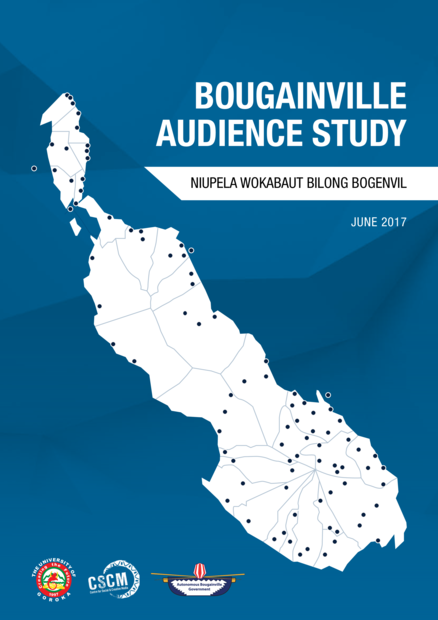 "The Bougainville Audience Research Study seeks to increase understanding of the Information and Communication landscape in Bougainville [Papua new Guinea] for the Autonomous Bougainville Government (ABG). The research is designed to inform the development, implementation and evaluation of communication initiatives and awareness undertaken by ABG. The focus of the research is on understanding the access and use of media and communication channels by the people in communities, and to provide a voice for their understandings and concerns with regards to the Bougainville Peace Agreement (BPA) and the upcoming Referendum. The study was undertaken by the Centre for Social and Creative Media (CSCM) at the University of Goroka. As part of the study 16 field researchers from Bougainville were trained in research design and data collection. The study used a mixed-methods approach combining quantitative and qualitative methods. It presents a baseline study that can be used to monitor changes in the media and communication landscape in the years to come. As information and communication is key to most development and addressing social issues, it is hoped that this research study provides useful information to other government departments, non-government organisations, aid agencies and local groups and organisations. Above all, this reports aims to represent the voices of the audience, the people of Bougainville, as it captures their current situations and their aspirations." (Introduction)