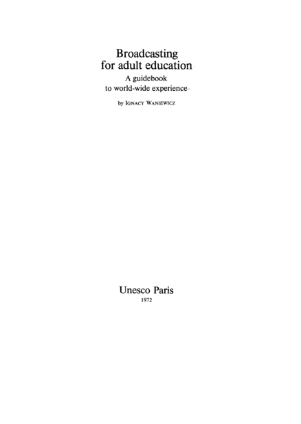 "The intention of this publication is to provide practical advice and guidance on the use of radio and television broadcasting in adult education. It is addressed to educational planners and administrators, educators responsible for curriculum development and teaching methodology, field-work organizers, as well as broadcasting administrators and producers. Its main interest will be for readers in those countries where the use of radio and television for adult education is still in its introductory stages. The conclusions of a meeting of experts on the use of mass media in adult education organized by Unesco in November 1967 state that: ‘There is convincing evidence from projects in many parts of the world that the mass media can be effectively applied to the development of resources to meet basic economic, social, educational and cultural needs. Experience to date is sufficient proof, and the urgency of extending the scale and effectiveness of adult education is so great that the emphasis should be placed on the massive application of known media of communication to the priority tasks of all countries.’ This handbook is an attempt to sum up practical experience gained so far in planning, initiating and operating projects of various types in different countries and regions." (Preface)