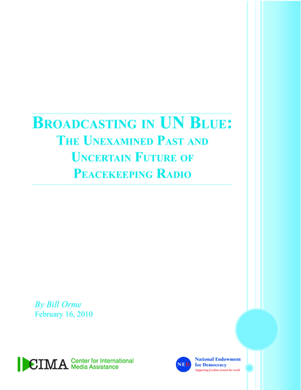 "For almost twenty years, United Nations peacekeeping missions have set up local radio stations in conflict-prone countries - 14 to date, seven of which remain in operation. According to this report, some of the fourteen peacekeeping radio stations implemented by the United Nations contributed more to democratisation and media development in certain post-conflict countries than any other media assistance programmes. Surveys have confirmed their popularity and credibility with national audiences, and local journalists have lauded their contributions to media diversity and journalism standards. Nevertheless, Bill Orme states that the UN radios were created without long-term planning. Upon disappearance of UN peacekeeping missions the stations were simply closed, therefore losing their positive effects on democratisation and plurality. Only in Sierra Leone and the Democratic Republic of Congo (Radio Okapi) were there serious attempts to continue the stations after the exit of the UN missions. Based on detailed description and analysis of the different experiences, Orme formulates a number of policy steps that would help UN radios to become lasting contributions to press freedom and peacekeeping." (CAMECO Update 2-2010)