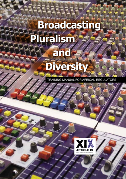 "The African Charter on Broadcasting, adopted in 2001 on the tenth anniversary of the Windhoek Declaration, alongside the African Commission on Human and Peoples’ Rights Declaration of Principles on Freedom of Expression in Africa establish a series of important principles that should guide the development of African broadcasting. These include: the crucial important of independent broadcasting regulators; the transformation of state and government broadcasters into public broadcasters; the importance of encouraging pluralism and diversity in ownership of broadcasting. The task of implementing these principles lies to a large extent with African broadcasting regulators. This manual is aimed at members and staff of African broadcasting regulatory bodies, along with others, such as journalists, broadcasters and civil society groups who are seeking to realize the ideals in these declarations." (Purpose of this manual, page 10)