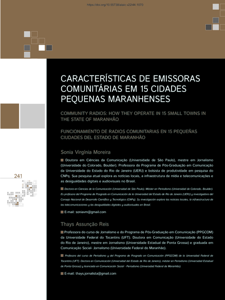 "Dezessete emissoras de rádio comunitárias localizadas em 15 cidades pequenas no entorno de Imperatriz, a segunda cidade mais populosa do estado do Maranhão, são o objeto desta análise. As rádios comunitárias predominam na região Nordeste e, em muitos casos, são a única referência de mídia para a comunidade, o que dá a dimensão dos efeitos da sua proximidade e influência. A maioria das emissoras analisadas está localizada em regiões com densidade demográfica inferior a 50 habitantes por quilômetro quadrado, apresenta Índice de Desenvolvimento Humano Municipal (IDHM) Baixo ou Médio e tem menos de 30 anos. Nesse cenário, os laços políticos, as ligações religiosas, o baixo orçamento e a falta de uma produção verdadeiramente local são os elementos estruturais que fundamentam este artigo." (Resumo)