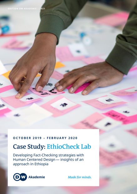 "DW Akademie initiated a human-centered design (HCD) process as a starting point for a media development project in Ethiopia. The aim was to develop a better understanding and assess the current situation regarding misinformation and disinformation. The process with journalists and media experts from Ethiopia was conducted between October 2019 and February 2020 in Addis Ababa in order to find an accepted and feasible way to support fact-checking in Ethiopia. This case study shows the process of gaining insights into the “context of use” for fact-checkers and the main results of the ideation on fact-checking initiatives within the very diverse Ethiopian context." (Page 7)