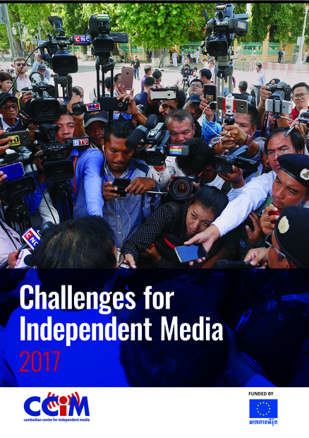 "Only 11 percent of 75 surveyed journalists said Cambodian media was headed in the right direction, down from 71 percent in 2015. 83 percent said media freedom had decreased in the past year. 92 percent consider the shutdowns of independent media outlets this year to have been political. 38 percent said they had been verbally or physically attacked sometime during their careers in Cambodia, and 47 percent said they had been threatened at one point, up from 26 and 29 percent in 2015. 14 percent said they had been verbally or physically attacked during the past year, and 20 percent said they had been threatened. 67 percent of journalists said they do not feel completely free to report on all subjects without fear of interference or repercussions, up from 58 percent in 2015 and 47 percent in 2014. 91 percent use encrypted messaging service WhatsApp for work communications. Corruption was rated as the most difficult topic to report on in Cambodia, with an average score of 4.2 out of 5. 60 percent said they had participated in more than five training sessions during their careers in Cambodia. 85 percent said they did not think the majority of journalists in Cambodia conducted themselves with sufficient professionalism. The Cambodia Daily, Phnom Penh Post and Voice of America were rated as the most independent media outlets in Cambodia in 2017. Fresh News, Nice TV and Bayon were rated the least independent." (Key findings, page 2)