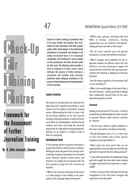 Check-up for Training Centres: Framework for the Assessment of Further Journalism Training