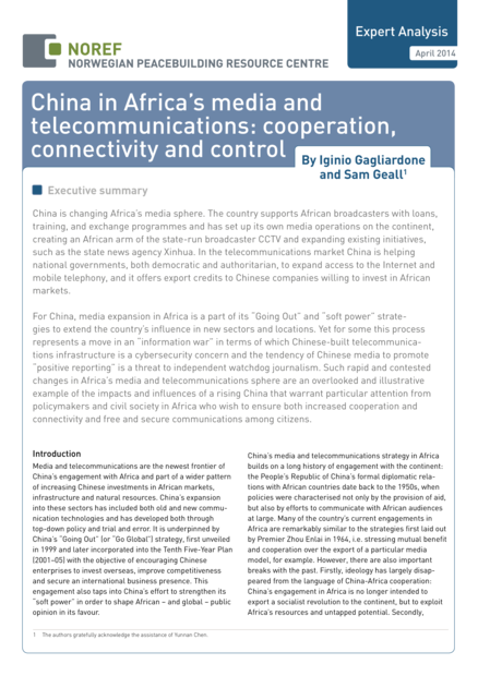 "China is changing Africa’s media sphere. The country supports African broadcasters with loans, training, and exchange programmes and has set up its own media operations on the continent, creating an African arm of the state-run broadcaster CCTV and expanding existing initiatives, such as the state news agency Xinhua. In the telecommunications market China is helping national governments, both democratic and authoritarian, to expand access to the Internet and mobile telephony, and it offers export credits to Chinese companies willing to invest in African markets. For China, media expansion in Africa is a part of its “Going Out” and “soft power” strategies to extend the country’s influence in new sectors and locations. Yet for some this process represents a move in an “information war” in terms of which Chinese-built telecommunications infrastructure is a cybersecurity concern and the tendency of Chinese media to promote “positive reporting” is a threat to independent watchdog journalism." (Summary)
