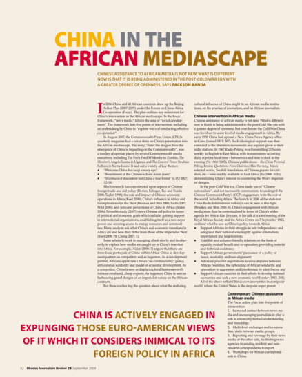 "Chinese assistance to African media is not new. What is different now is that it is being administered in the post-Cold War era with a greater degree of openness." (Page 52)