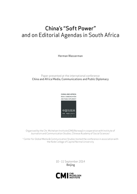 China’s “Soft Power” and on Editorial Agendas in South Africa