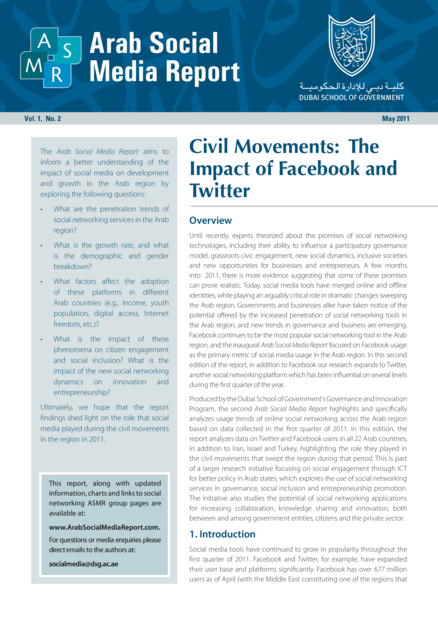 Arab Social Media Report , volume 1, issue 2 (2011), 29 pp.