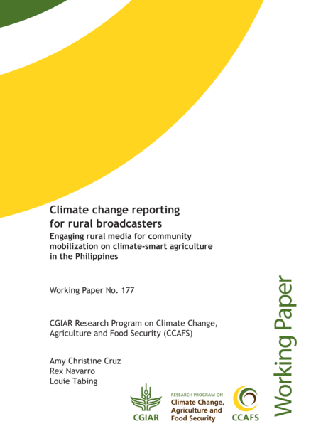 "Radio broadcasting is an important means for reaching, informing and engaging rural communities in the Philippines. Many households in fact rely on radio for their information and communication needs. Media practitioners are therefore important actors in the communication process, especially in communicating to communities about climate change, agriculture and food security. Most of the times, however, media practitioners and rural broadcasters do not have the skills and technical knowledge to report effectively and efficiently about these subjects. The PFRB initiative to hold seminar workshops on reporting climate change and related issues for rural broadcasters and information officers of government agencies in the Philippines aimed to address this gap. As one of the outcomes from the media seminar workshop series conducted by CCAFS-SEA in the Philippines, Vietnam, Laos and Cambodia, the PFRB workshop series discussed climate change and agriculture in the context of the communities wherein the broadcasters work. It also enhanced their skills in packaging technical information in messages that appeal to their audiences, the rural communities." (Conclusion, page 19)