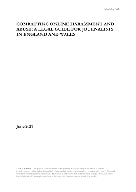 Combatting Online Harassment and Abuse: A Legal Guide for Journalists in England and Wales