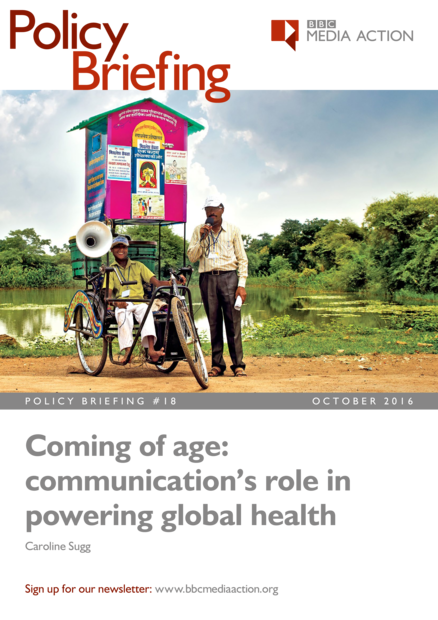 "Through a careful review of the evidence, this briefing offers a spirited case for why donors, practitioners and developing country governments need to pay more attention to the role of communication in tackling global health. The briefing finds that: Communication has been central to public health developments from Ebola to polio and from HIV to child survival. While health policy officials recognise the importance of health communication, it often remains poorly funded, under-utilised and badly planned in public health programmes. Even when it does prioritise communication, public health programming often fails to reflect best practice around the role of social and behaviour change communications (SBCC). Progress has been stymied by the complexity of social and behaviour change communication, debates around “what counts” as evidence, and the learning and capacity-strengthening gaps within the health communication field. Donors should ensure that their staff are familiar with the health communication evidence base and lessons learned from past programmes, so that they are equipped to plan and evaluate proposals for new communication interventions effectively." (BBC Media Action website)