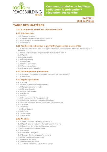 Other editions: English ed.: How to produce a radio soap for conflict prevention/resolution. Part 1, 2005