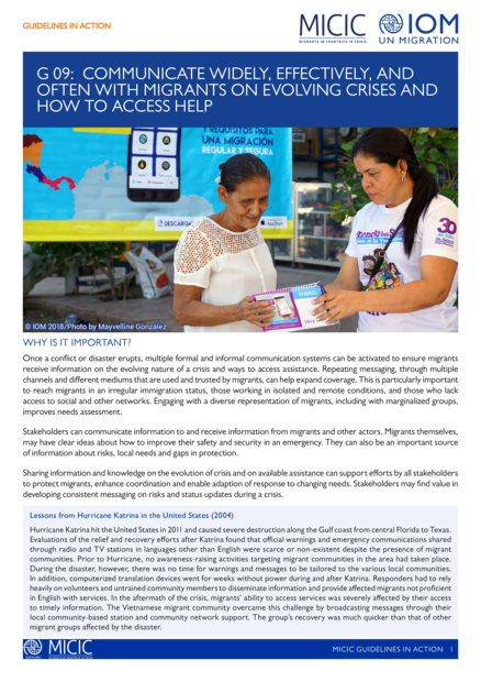 Communicate Widely, Effectively, and Often with Migrants on Evolving Crises and How to Access Help