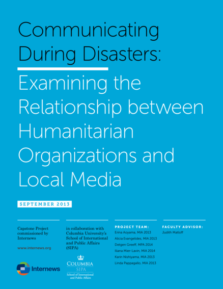 "This survey asked representatives of major humanitarian aid organizations to reflect on how their operations in the field communicate with disaster-affected communities [...] The two areas in which progress is critical are improving the relationship between humanitarian organizations and local media, and ensuring that humanitarian and donor organizations prioritize two-way communication." (Executive summary)