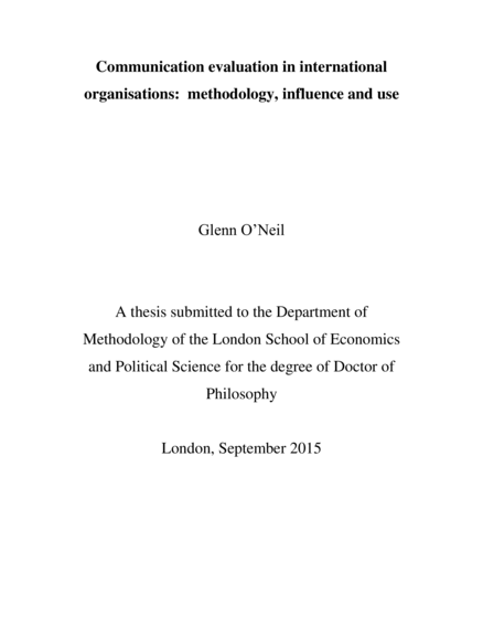 "International organisations (IOs) wield considerable influence in today’s world. Distinguishing them from other actors are the new ideas they produce and communicate that can reframe global debates. However, there is little research about how these organisations evaluate their communication activities. This thesis sets out to fill this gap by providing the first in-depth study of communication evaluation within IOs. The central question of this thesis is to assess the extent to which communication evaluation is possible within IOs with three specific questions: 1) the appropriateness and feasibility of communication evaluation methodology for IOs; 2) the influence of internal and external factors; and 3) the use of communication evaluation findings in IOs." (Abstract)