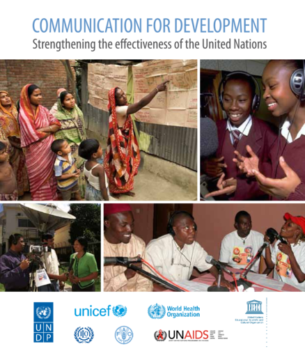 This publication outlines four communication approaches used by United Nations organizations: (i) behaviour change communication; (ii) communication for social change; (iii) communication for advocacy; and (iv) strengthening an enabling media and communications environment. The second part provides an in-depth exploration of Communication for Development efforts within seven United Nations agencies, programmes and funds: FAO, ILO, UNAIDS, UNDP, UNESCO, UNICEF and WHO, followed by case studies that demonstrate C4D in practice either as part of a larger project or as a ‘stand alone’ project contributing to the strategic objectives of the organization.