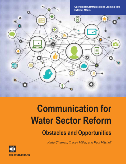 "This Learning Note is published by the Operational Communications Division in the World Bank’s External Affairs Vice Presidency. It aims to help task managers communicate with service providers as they prepare for an urban water supply reform project. The focus is on how strategic public communication programs can help governments and stakeholders improve the delivery and sustainability of water supply services. The note will also be helpful for government officials, policy makers, utility managers, communication specialists, and NGOs who are navigating the social and political issues associated with water reform and who want to improve the commercial viability of the services. It does not prescribe solutions for how services should be delivered, but examines how integrating strategic communication programs into the broader reform agenda can help achieve better development results." (Background, page V)