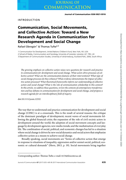 "The growing emphasis on collective action raises new questions for research and practice in communication for development and social change. What actors drive processes of collective action? What are the communication features of their interventions? What type of social change processes do they enhance? What evidence demonstrates the impact of collective action processes? What theoretical frameworks inform our understanding of collective action and social change? What is the role of communication scholarship in this context? In this article, we address these questions, review the contexts of contemporary transformation and key debates in communication for development and social change, and propose a research agenda for an interdisciplinary field of inquiry." (Abstract)