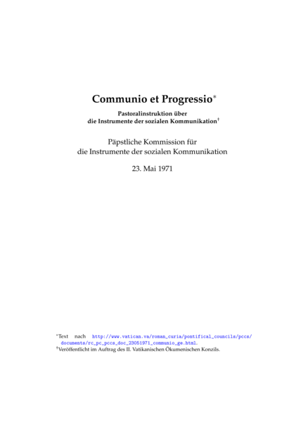 Communio et Progressio: Pastoralinstruktion über die Instrumente der sozialen Kommunikation