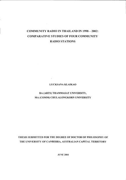 Community Radio in Thailand in 1998 - 2002: Comparative Studies of Four Community Radio Stations