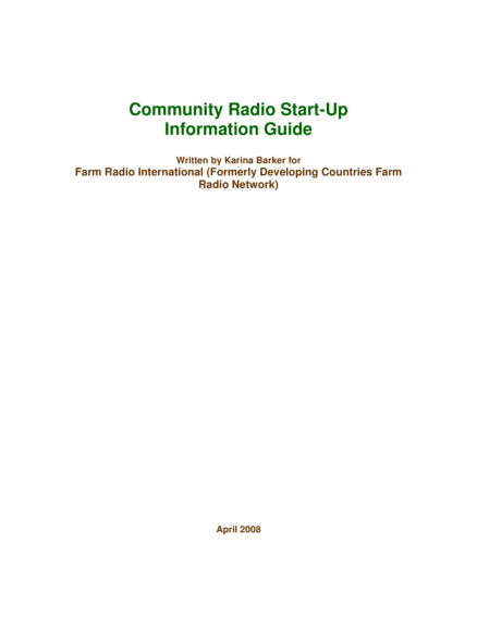 "Setting up a community radio station can seem complicated and intimidating. However, there is a lot of information and resources available to guide you and your community through this process. This section will help you find some of that information. This manual is divided into six steps: Getting Started; Legal Considerations; Funding Options; Selecting Equipment; Managing a Community Radio Station; and Broadcasting. This guide briefly explains the significance of each of these steps and then points to where you can look to find additional information." (Page 4)