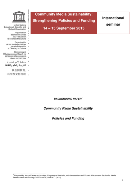 National funding mechanisms -- State financing policies -- International donor support -- Untapped resources: Universal Access Funds
