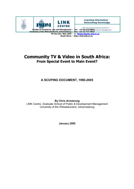 Community TV & Video in South Africa: From Special Event to Main Event? A Scoping Document, 1990-2005