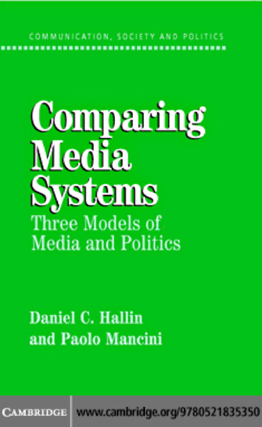 "This book proposes a framework for comparative analysis of the relation between the media and the political system. Building on a survey of media institutions in eighteen West European and North American democracies, Hallin and Mancini identify the principal dimensions of variation in media systems and the political variables that have shaped their evolution. They go on to identify three major models of media system development, the Polarized Pluralist, Democratic Corporatist, and Liberal models; to explain why the media have played a different role in politics in each of these systems; and to explore the forces of change that are currently transforming them. It provides a key theoretical statement about the relation between media and political systems, a key statement about the methodology of comparative analysis in political communication, and a clear overviewof the variety ofmedia institutions that have developed in theWest, understood within their political and historical context." (Publisher description)