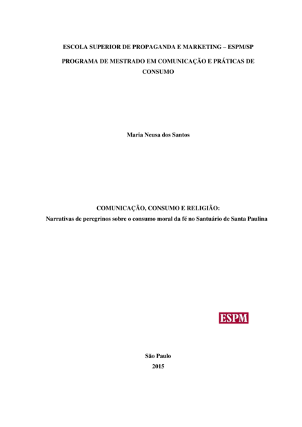 Comunicação, consumo e religião: Narrativas de peregrinos sobre o consumo moral da fé no Santuário de Santa Paulina