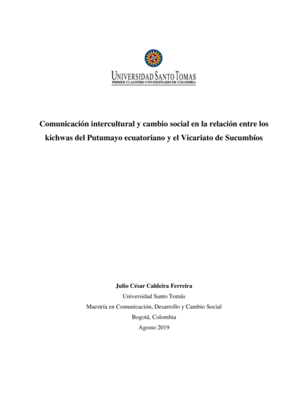 Comunicación intercultural y cambio social en la relación entre los kichwas del Putumayo ecuatoriano y el Vicariato de Sucumbíos