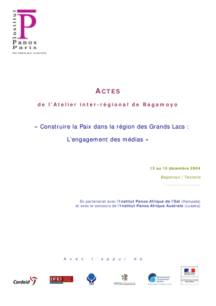 Construire la paix dans la région des Grands Lacs: L'engagement des medias. Actes de l'atelier inter-régional de Bagamoyo