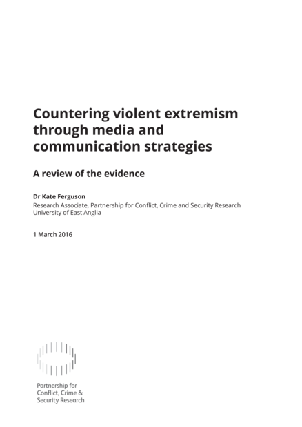 "Part I focuses on 'Counter-Narratives', looking at the evidence relating to strategic policy communication strategies and counter-propaganda techniques. This reflects literature from policymakers, think-tanks, and civil society initiatives rather than the academic literature base. Current literature and policy concerned with countering propaganda is dominated by the language of ‘counter-narratives’ but a common understanding of this relatively new lexicon has yet to emerge. There is little hard evidence that proves interaction with VE content leads to participation in VE activities [...] Part II looks at “Alternative Approaches” to the use of the media to counter violent extremism, drawing on insights from the “media development” and “media assistance” sectors, and research into whether mass media and new communication interventions can inhibit identity-based violence in certain crisis situations. The theoretical foundations for these alternative approaches are supported by a stronger and more established research base, drawn from the multi-disciplinary fields of development, peace building, and social cohesion. Media projects have less impact if seen to be linked to a political agenda. A growing evidence base suggests that radio and television drama addressing issues of identity, reconciliation and tolerance have a positive an impact on public attitudes and behaviour. Media assistance can ensure that local and domestic media can respond appropriately to VE narratives." (Executive summary)