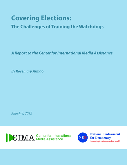 "Covering elections is not just coverage of one “grand event,” and training must reflect that. Short-term training just in advance of election day has been mostly discounted as ineffective. More must be done to cast elections as part of a critical on-going political process and to equip journalists to understand, monitor, and report about that. Training journalists to cover elections must be paired with other legal and election infrastructure reform if meaningful change is the goal. International donors could have great influence by pushing harder for formation of election commissions with actual clout in countries where they work and for clear election laws, especially campaign finance transparency laws. Framing and passage of laws to protect journalists who cover politics also should be on donors’ agendas." (Conclusions, page 27)