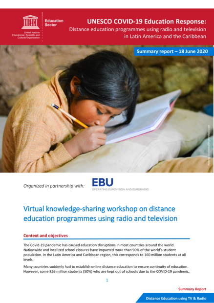 COVID-19 Education Response Webinar: Distance Education Programmes Using Radio and Television in Latin America, Summary Report, 18 June 2020