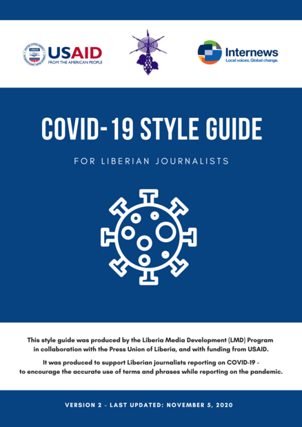"This style guide [...] was produced to support Liberian journalists reporting on COVID-19 - to encourage the accurate use of terms and phrases while reporting on the pandemic." (Page 1)
