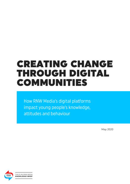 "The Theories of Change for both Citizens’ Voice [a programme focusing on social cohesion and inclusive governance] and the SRHR programme (which includes Love Matters [delivering information and media on love, sex and relationships to 18-30-year-olds]) contain a key assumption that through providing reliable information on our digital platforms, young people gain new knowledge and understanding on topics that matter to them. For Citizens’ Voice, the assumption is that by accessing pluralistic information and engaging in dialogue with people with other backgrounds and perspectives, young people are aware of different viewpoints, accept and respect diversity, challenge restrictive norms and participate in society. For Love Matters, it relates to providing evidence-based and pleasure-positive SRHR information that helps people to make informed decisions in their personal lives. To investigate whether this assumption holds true for both programmes, a dedicated survey question was included in the surveys of platform users conducted as part of the Next Generation Mid-Term Review (MTR) evaluation conducted by external researchers in 2019. This open question asked users whether they could give an example of a change they had experienced through engaging with the platform. The answers and examples given by users have been analysed by the PMEL team to answer the main research question: To what extent do returning users experience a change in knowledge, attitude or behaviour as a result of engaging with the platform?" (Introduction)