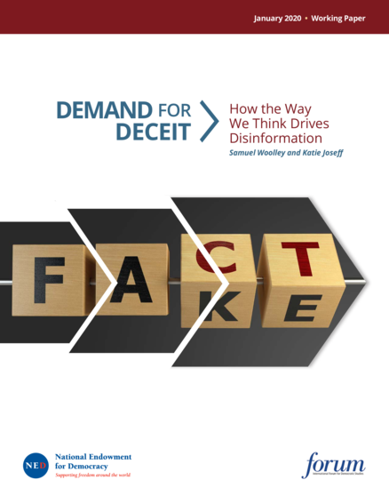 "Just because the effectiveness of disinformation may be tied to innate aspects of human psychology does not mean that democratic societies are powerless to respond. Rather, civil society, journalists, and other stakeholders invested in the freedom and openness of the global information space should develop innovative adaptations to the contemporary, disinformation-rich information landscape by bearing in mind key insights from the 'demand' side of this challenge: passive and active demand for disinformation; disinformation as a global phenomenon; accounting for psychology in fact-checking initiatives; mistrust vs. media literacy; the impact of emerging technologies on the disinformation crisis." (Executive summary)