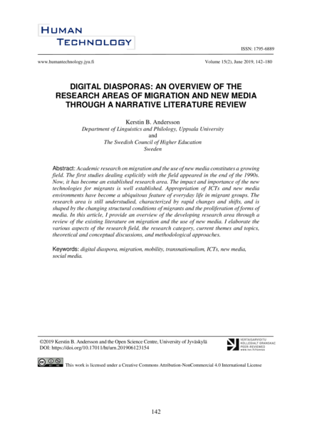 Digital Diasporas: An Overview of the Research Areas of Migration and New Media Through a Narrative Literature Review
