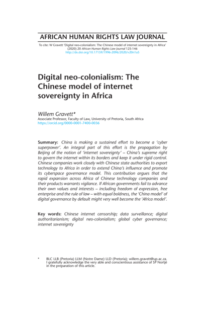Digital Neo-Colonialism: The Chinese Model of Internet Sovereignty in Africa