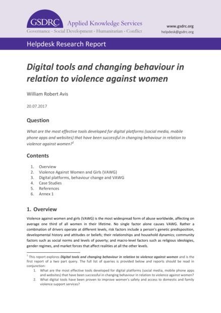"Campaigns are likely to be more successful when they include messages about legal penalties for non-compliant behaviour and fresh information, and when they reach a large proportion of the intended audience. Digital campaigns must therefore work alongside laws and policies. Legislation can be a key tool in changing behaviour and perceptions of cultural and social norms. Laws and policies that make violent behaviour an offence send a message to society that it is not acceptable.