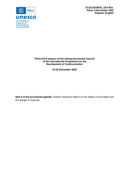 "In 2020-2021, UNESCO recorded a total of 117 killings of journalists worldwide, a high number in absolute terms, but a 25% drop from the previous two-year period, when UNESCO recorded a total of 156 killings. This biennium recorded the lowest death toll compared to any other reporting period since the first Director-General's report in 2008. The year 2021 shows the lowest annual death toll in 14 years with 55 deaths, representing a further decrease in killings compared to the previous record low of 57 killings in 2019. However, it is important to highlight that, although outside of the reporting period, as of 30 September 2022, according to the “UNESCO Observatory of killed journalists”, a total of 66 journalists have been killed in 2022." (Executive summary)