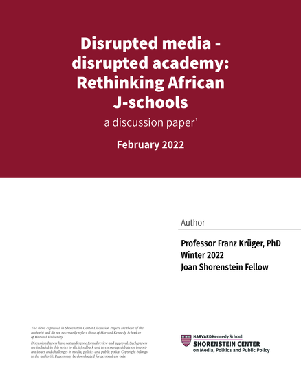 "The question at the core of this discussion paper is what are the implications for African journalism schools of the international crisis facing journalism and the specific needs of local audiences? More specifically, what are the implications in terms of curriculum, target groups and modalities? Or more simply put: what, who and how should journalism schools teach in order to remain relevant? The paper will then take a step further and consider the argument for journalism schools taking on a wider view of their function. Are there additional roles they can or should play in safeguarding and building healthy public information systems, beyond the traditional function of producing the next generation of journalists? In countries where there are few active media institutions, those that do exist would seem to have a particular responsibility to look beyond their comfort zones. That becomes especially necessary where those comfort zones are in decline." (Introduction)